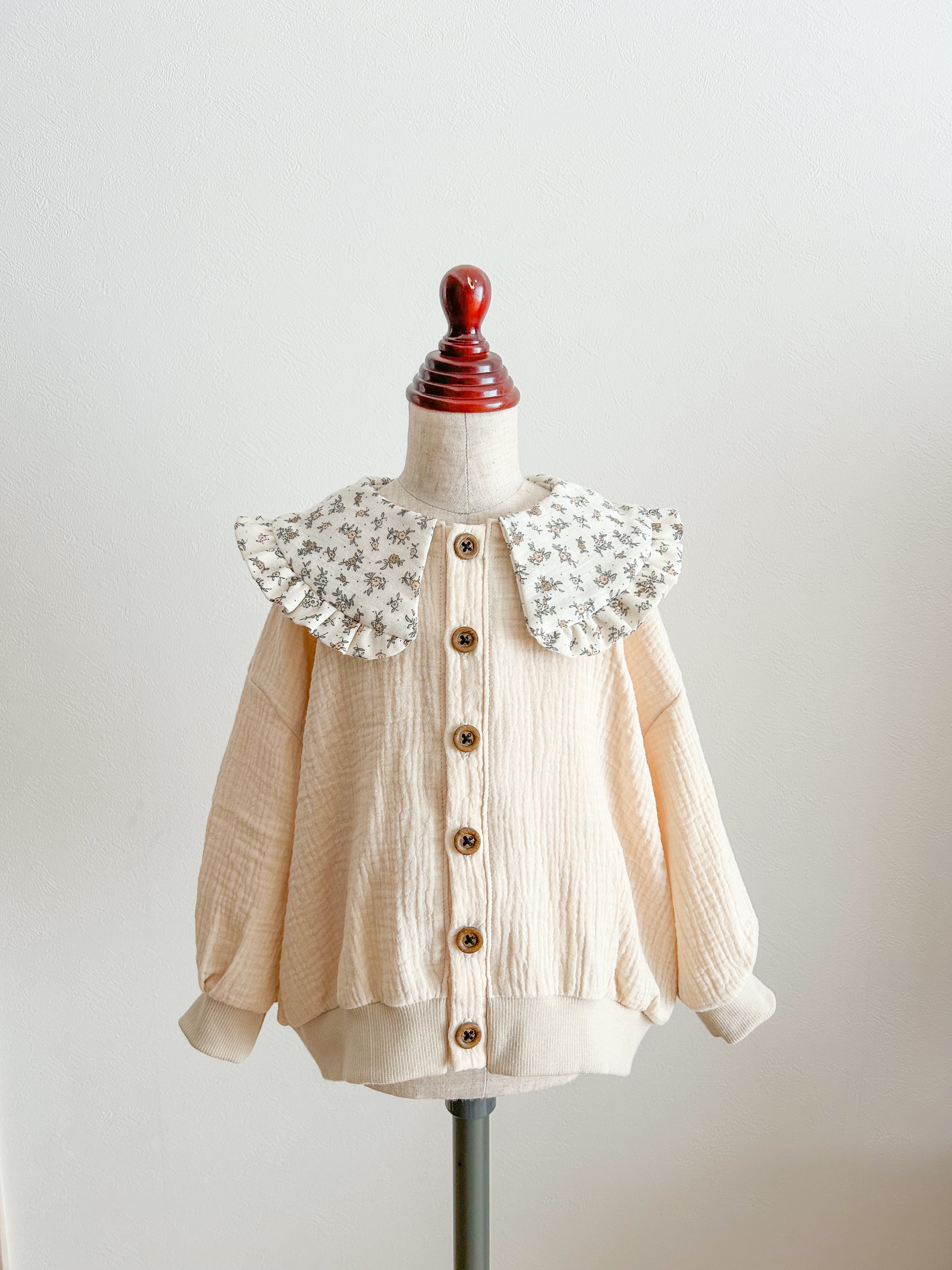 フリル襟がかわいいガーゼ生地のカーディガンです。